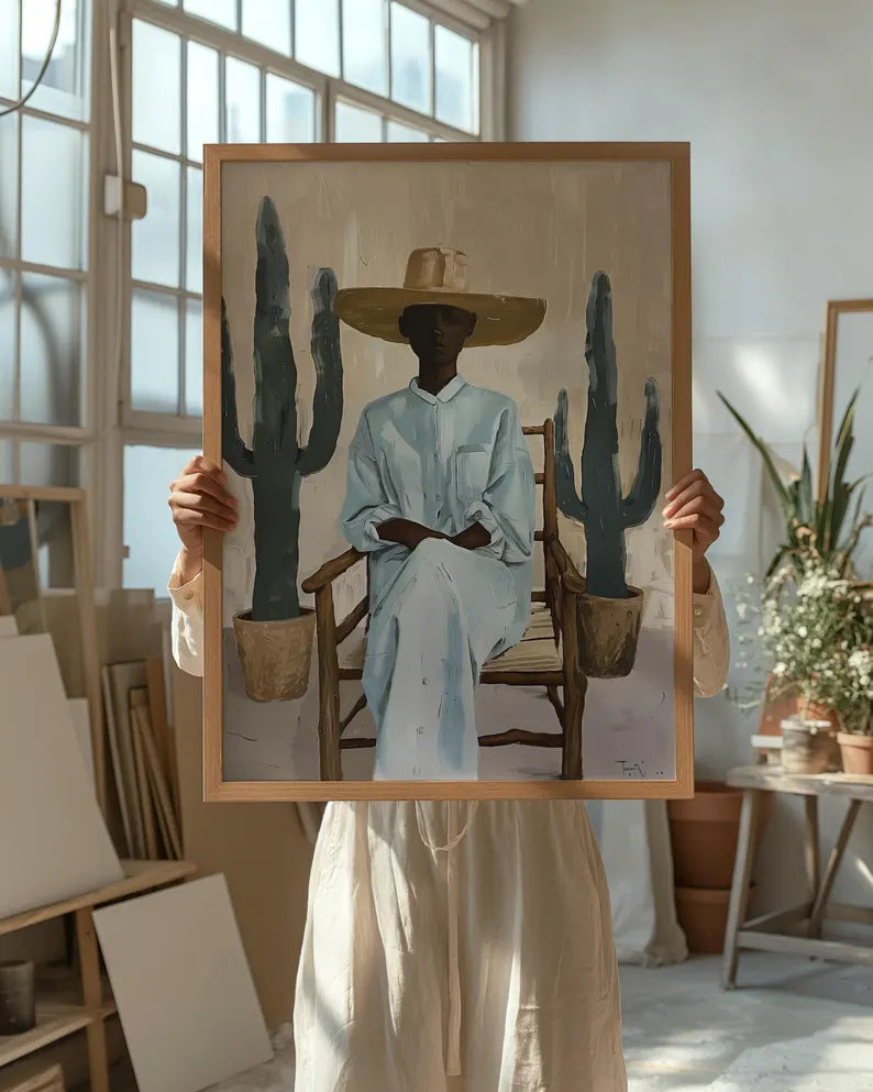 Cuadro Decorativo Mujeres, Moderno, Gorro, Cactus