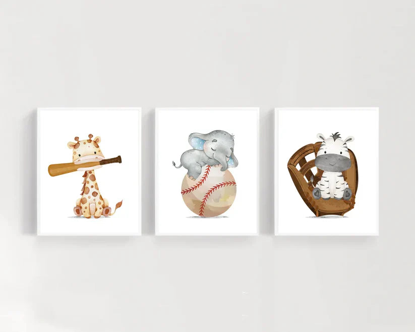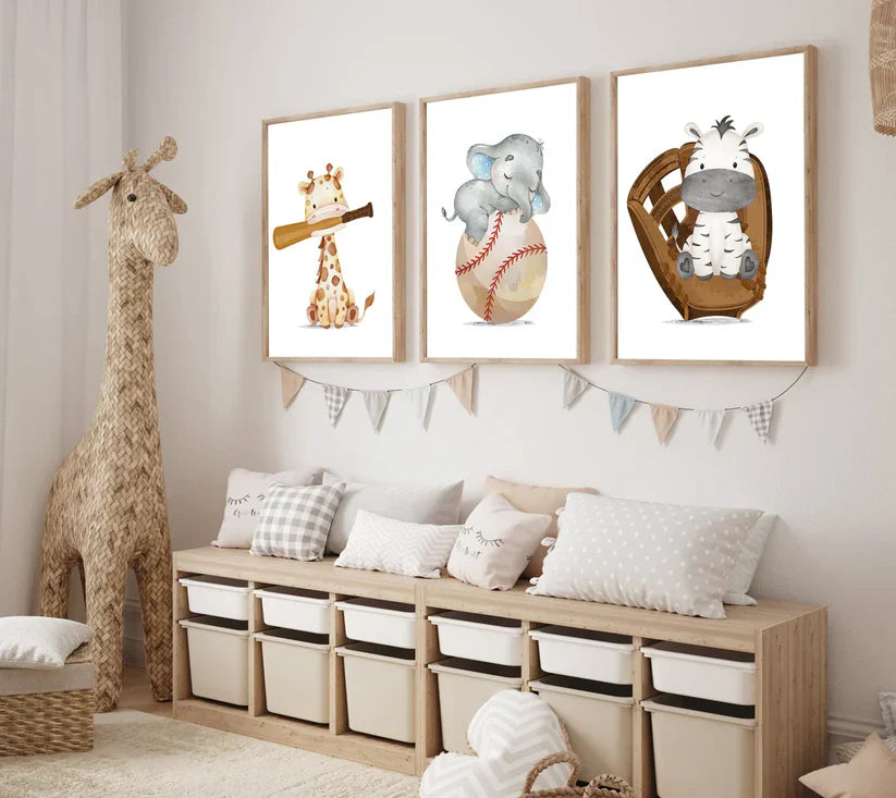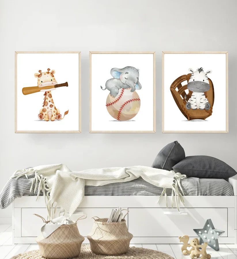 Set x3 Cuadros Infantil, kids, animalitos, beisbol.